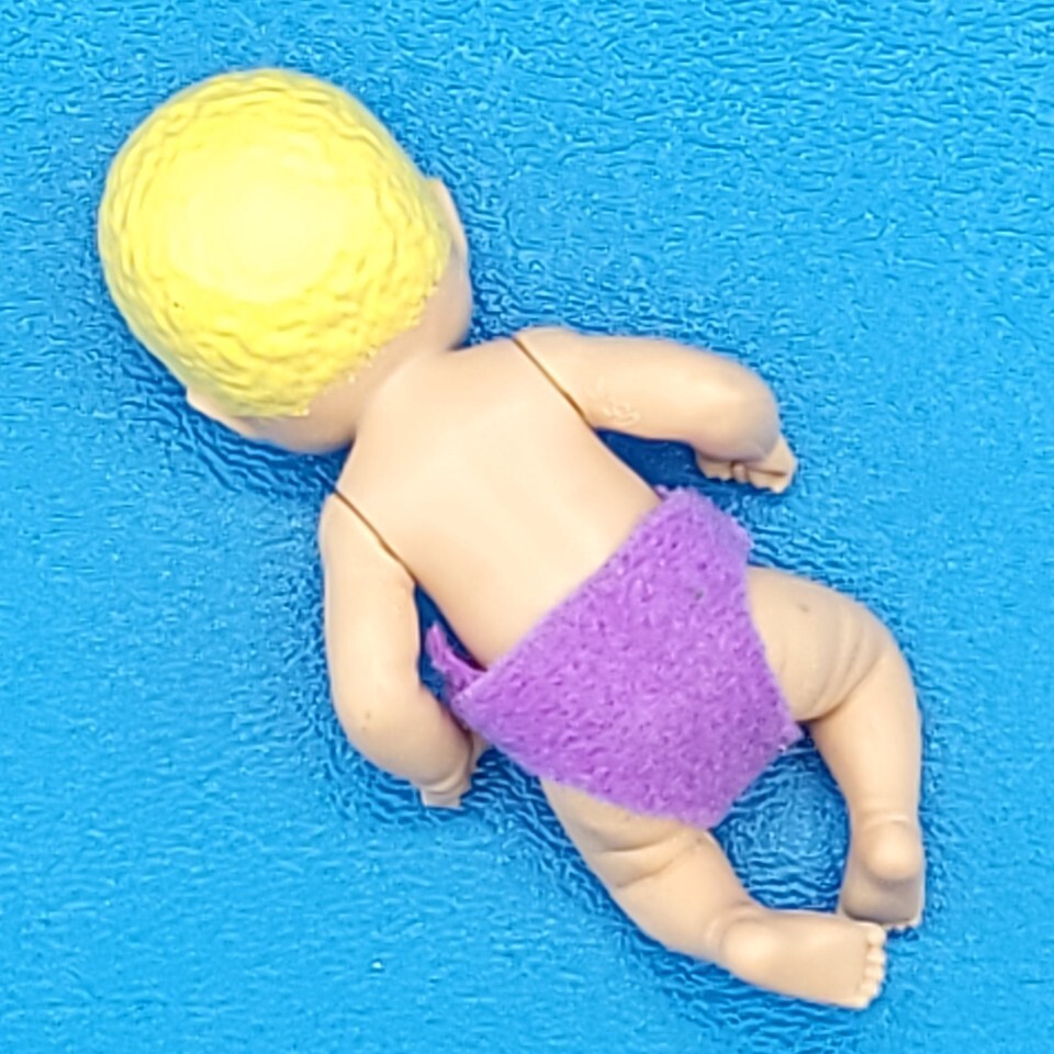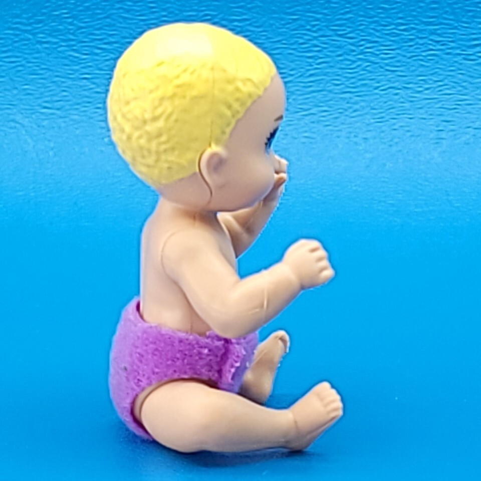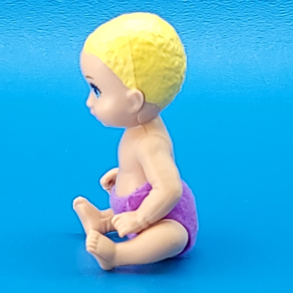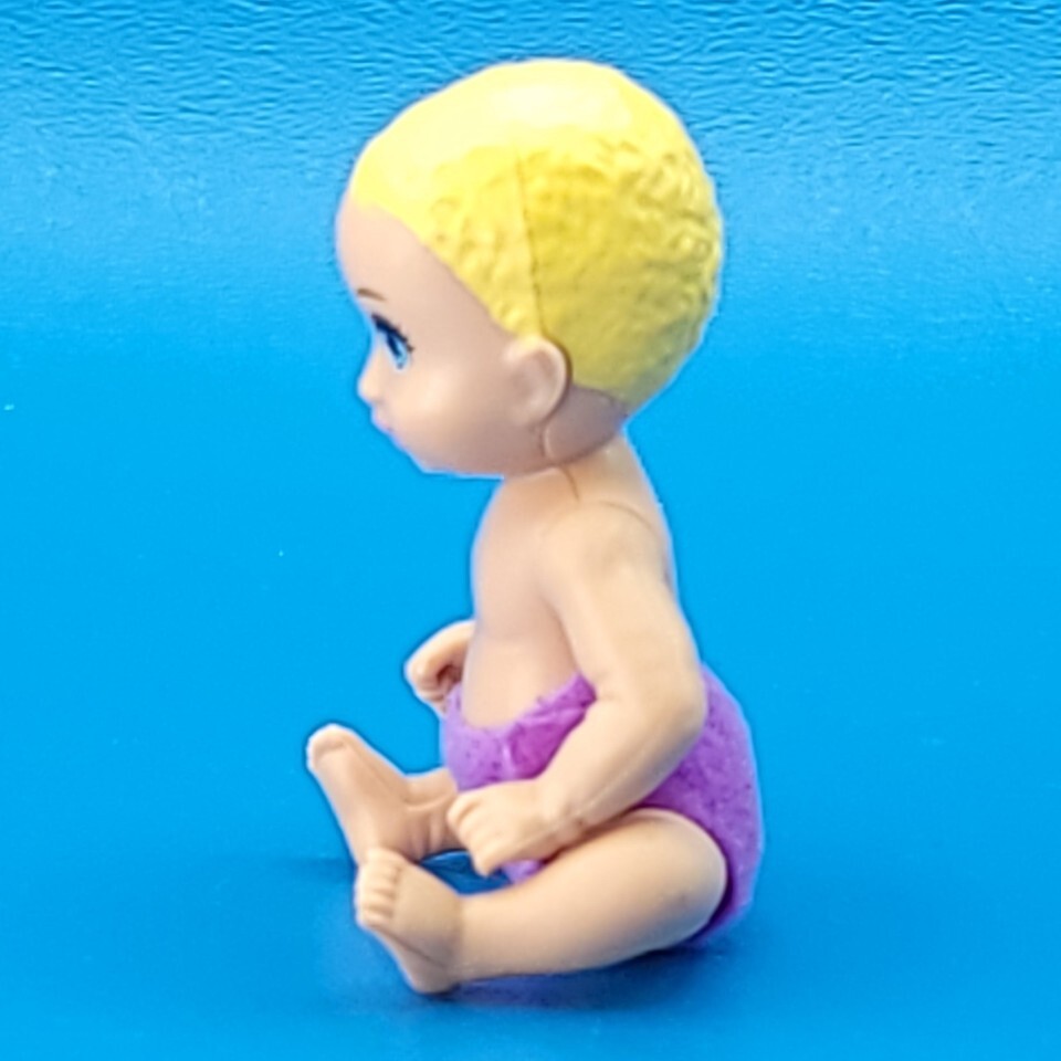 Add this 3-inch blonde baby doll from Barbie Skipper?s Babysitters Inc. to your collection. Featuring a purple diaper, this tiny Mattel figure is perfect for completing Skipper playsets or as a replacement baby for collectors. Ideal for display, play, or finishing a missing piece in your set.