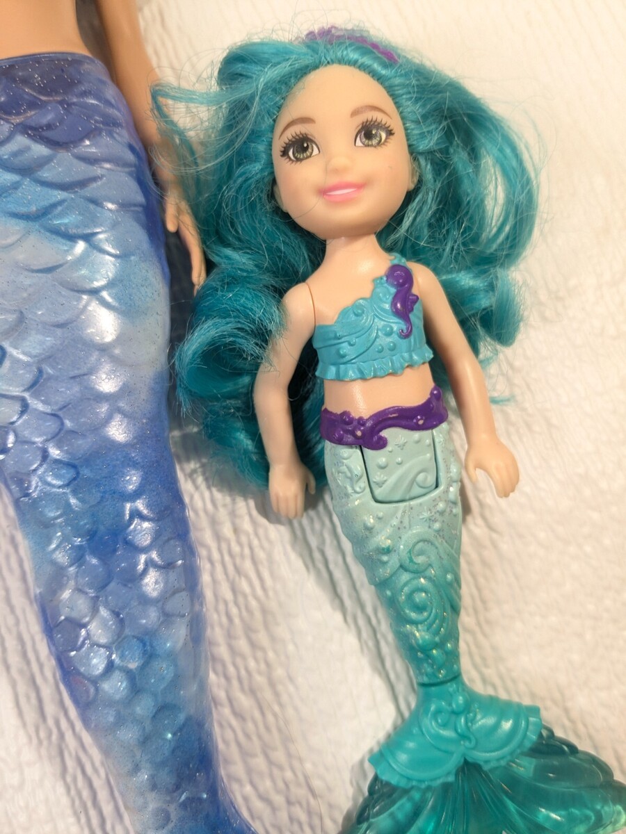 - Barbie set 4 Dreamtopia Mermaid Dolls Chelsea Ice Queen Blue Twinkle Lights