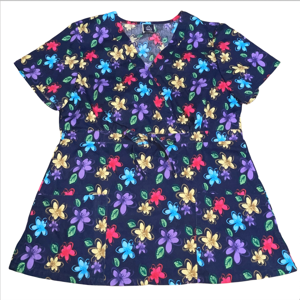 Barco Navy Blue Floral Pink Yellow Flower Scrub Shirt Size Small NWOT **READ***