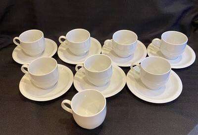 - Bareuther Waldsassen Bavaria Demitasse Cups and Saucers White Lot of 7 + 1 Cup