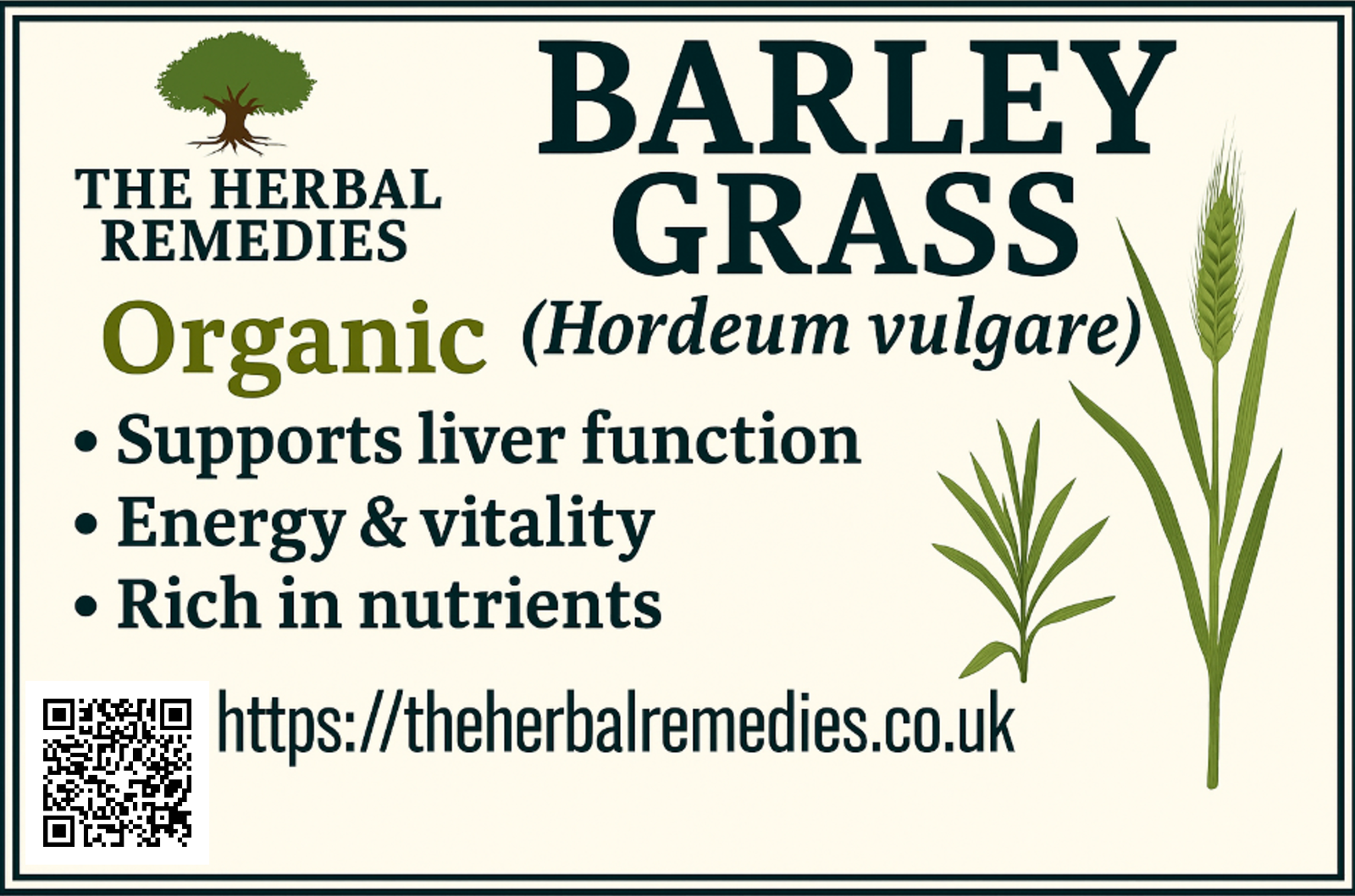 Barley grass is the young leafy stage of the barley plant harvested before the grain develops. It is a nutrient-dense superfood, rich in chlorophyll, vitamins, minerals, enzymes, amino acids, and antioxidants ? often used for energy, cleansing, and general wellbeing.