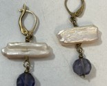 Baroque Rectangle Shaped Pearl & Purple Glass Bead 925 Sterling Silver Earrings