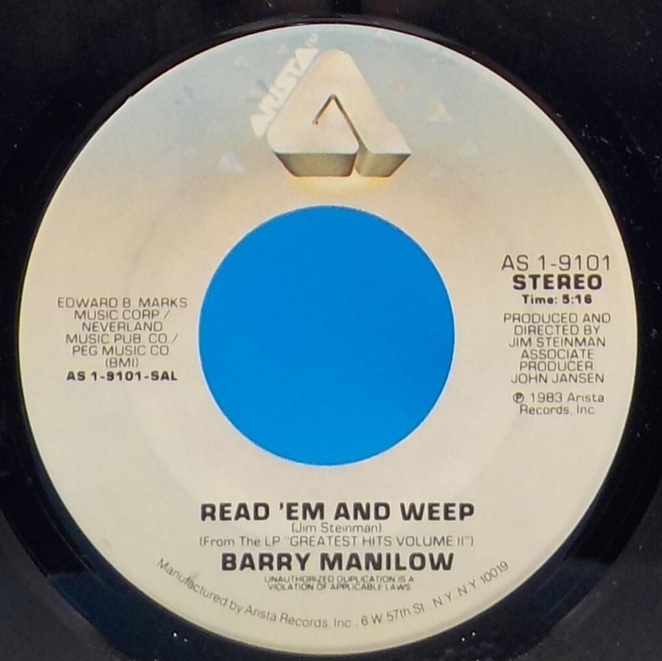 - Barry Manilow 45 Read 'Em And Weep / One Voice NM VG++ A4