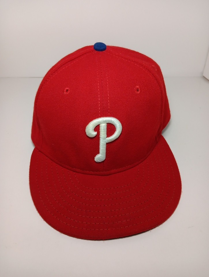 - Baseball Cap New Era 59Fifty Hat Philadelphia Phillies Red White Letter Sz 7 3/8