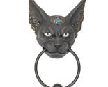 The door knocker is sculpted of polyresin, measures about 5 1.8 8.5 inches and is ready to hang with screws included.