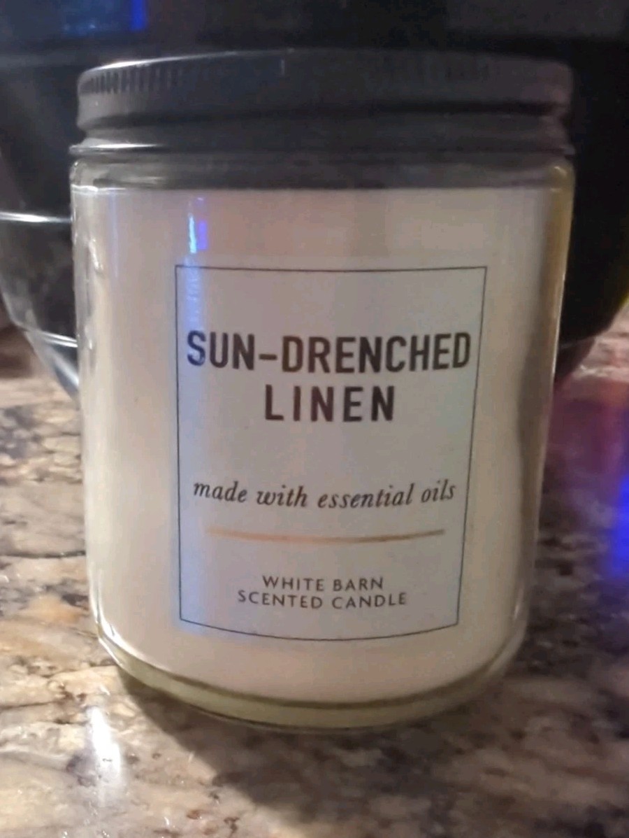 - Bath & Body Works SUN-DRENCHED LINEN Single Wick 7oz/198g Candle White Barn