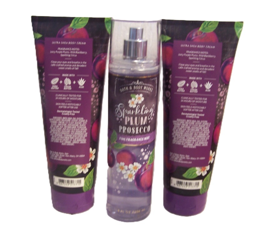 - Bath & Body Works Sparkling Plum Prosecco 3 Piece Set - Body Cream & Mist