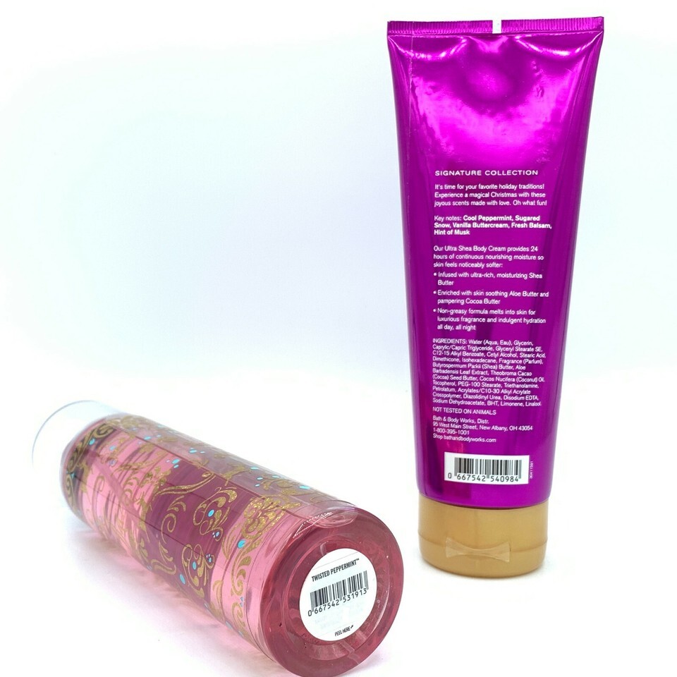 Bath Body Works Twisted Peppermint 8oz Fine Fragrance Mist and 8oz Body Cream Duo Set. Individual UPC 667542531913 , 667542540984 . Regular sizes.