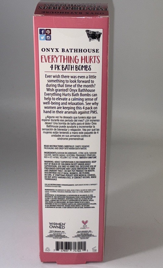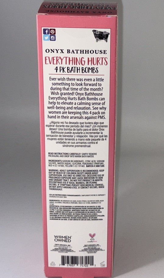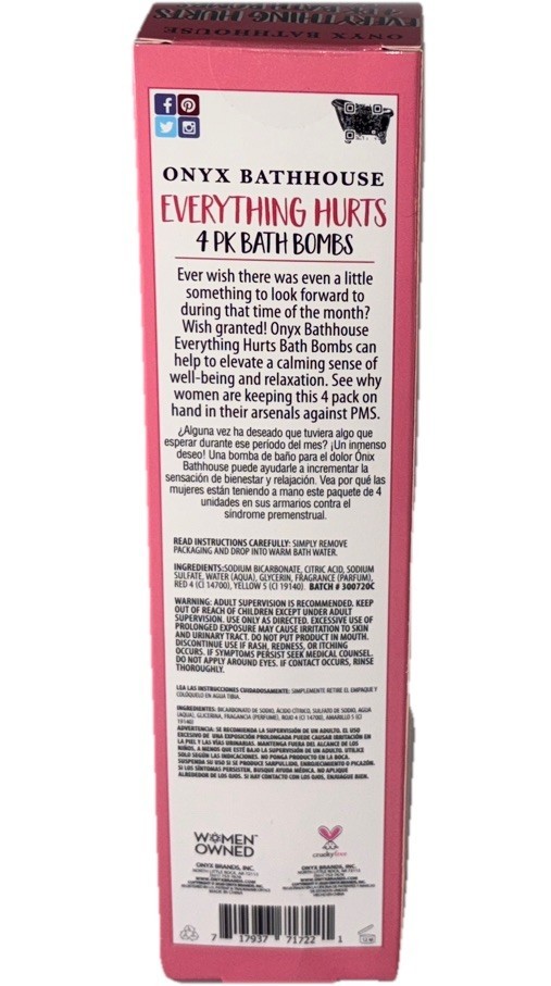 You Will Receive 1 ea 4pk Onyx Bathhouse Bath Bombs When Everything Hurts-PMS Infused Eucalyptus- *NEW Limited Time Product-Brand New-SHIPS N 24 HOURS.