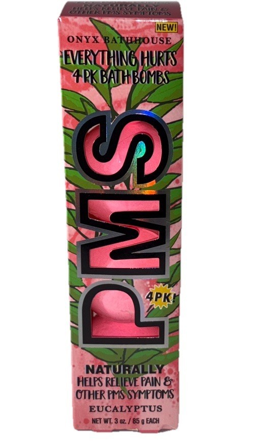 Onyx Bathhouse When Everything Hurts-PMS Infused Eucalyptus 1 Pack of 4 Bath Bombs- *NEW Limited Time Product-Brand New-SHIPS N 24 HOURS.