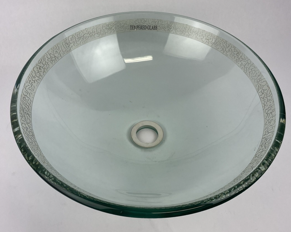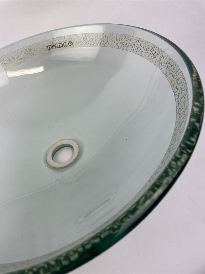 - Bathroom Glass Vessel Sink Drain Faucet Clear Tempered Combo Basin Bowl 17"x5.5"