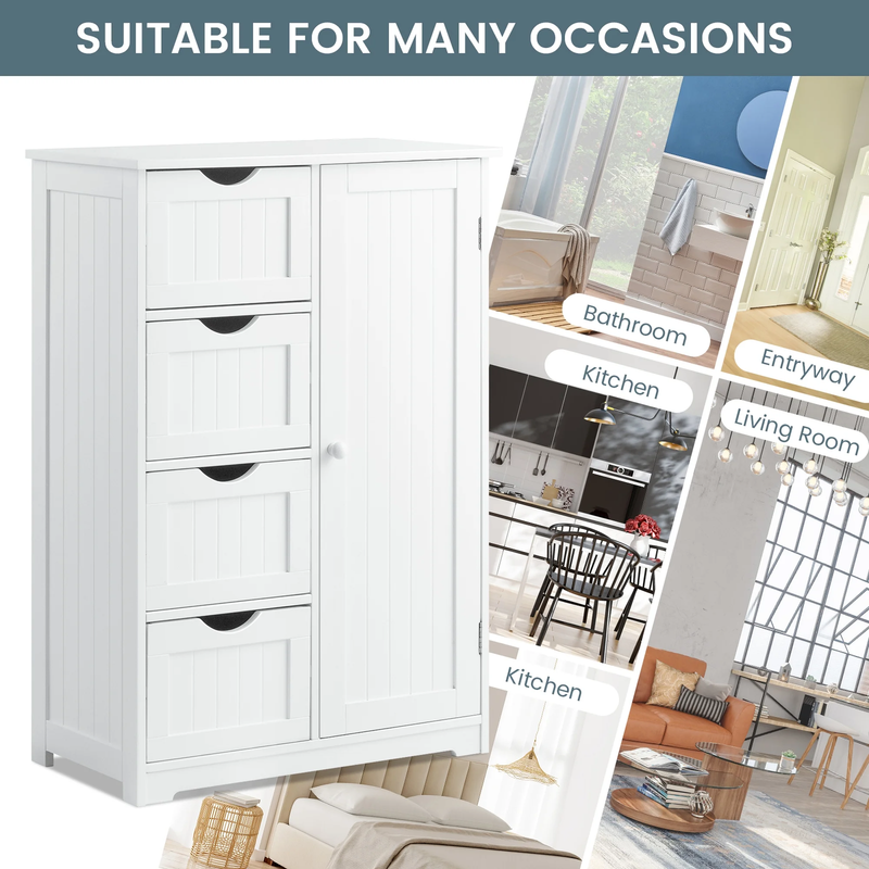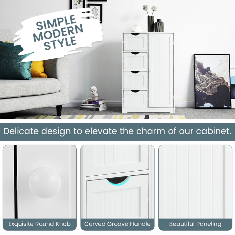 ?Widely Use?: Costway bathroom floor cabinet is perfect for keeping your bathroom clutter free, it features four deep drawers and a cupboard to conceal towels, toiletries and other essentials. You can also decorate the top of the unit with candles and other objects to add color and character to your bathroom.