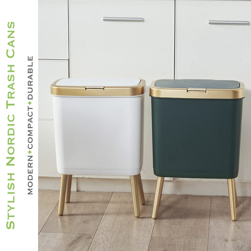 - Bathroom Trash Can with Lid, Plastic Garbage Can with Legs, 4 Gallon Gold Trash