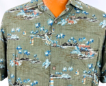 - Batik Bay Aloha Hawaiian Shirt L Green Palm Trees Tiki Hut Sailboats Island