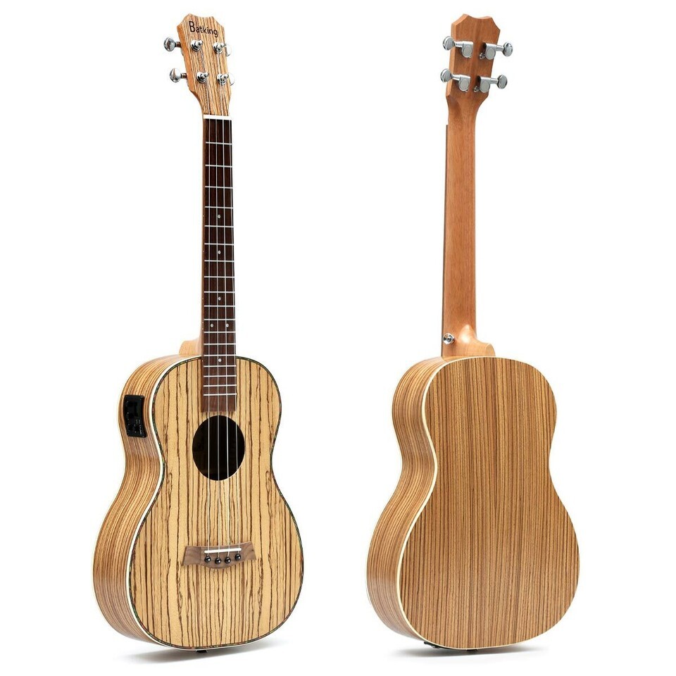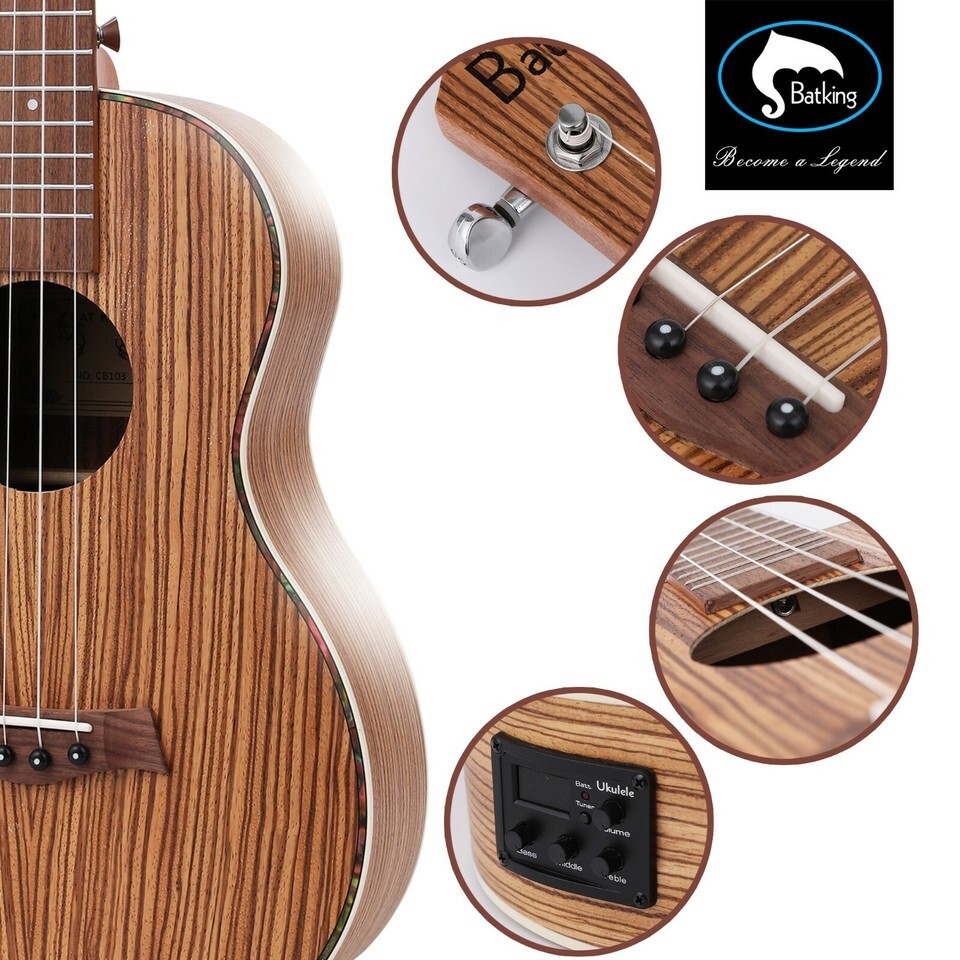 - Batking 30Inch Baritone Satin Zebrawood Acoustic Electric Ukulele/Truss Rod/EQ