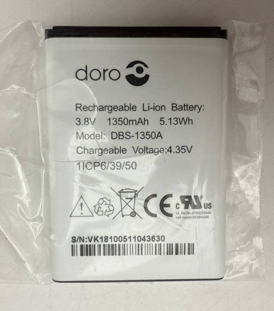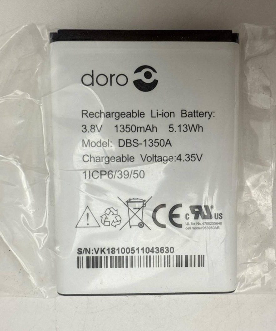 - Battery DBS1350A For Doro 7050 7060 7070 Flip Phone 1350mAh 3.8V OEM Replacement