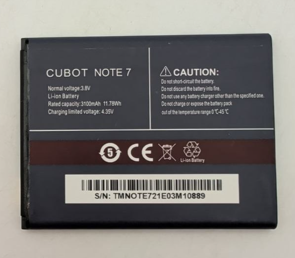 - Battery For CUBOT Note 7 Smartphone 3100mAh 3.8V OEM Replacement High Quality