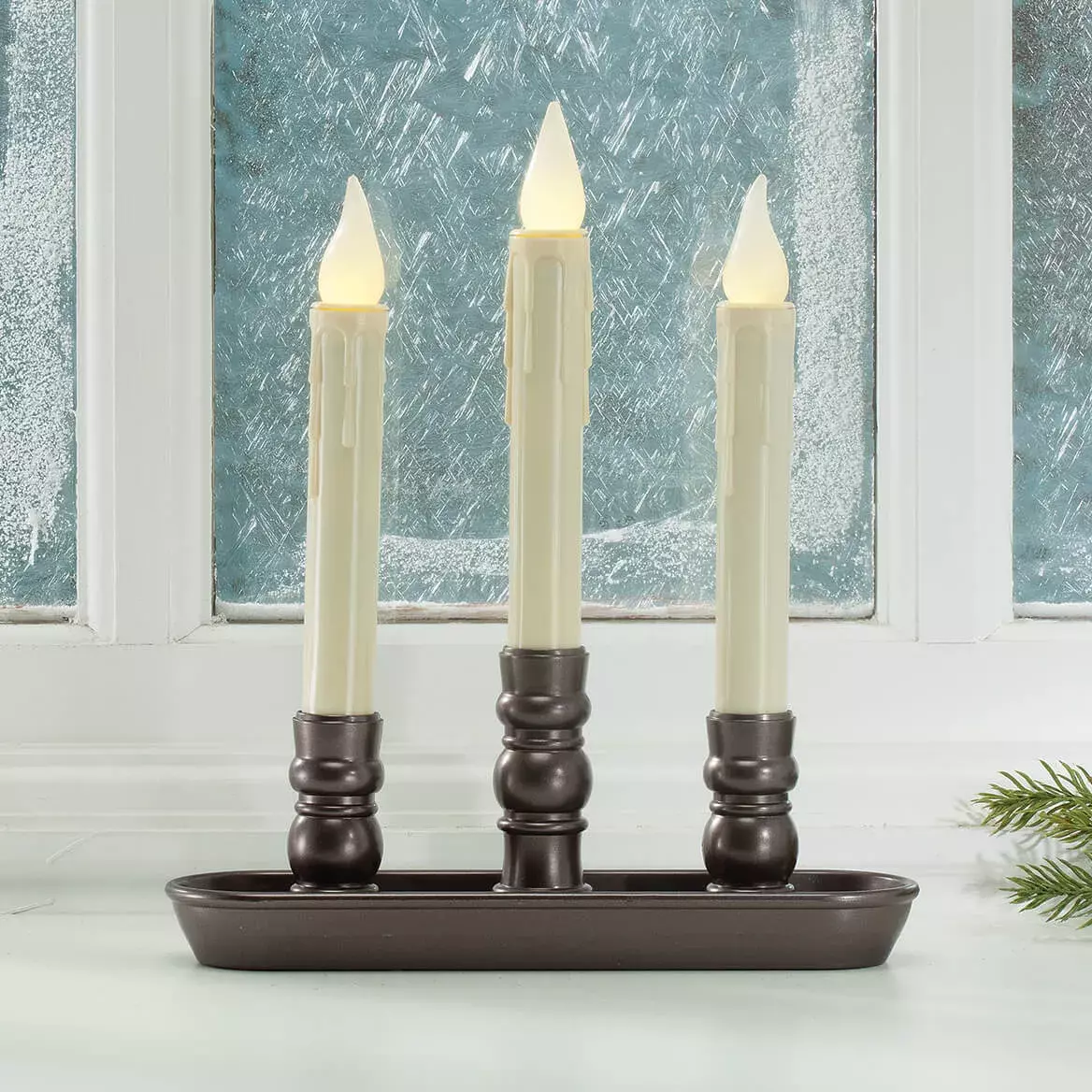 - Battery-Operated LED Triple Window Candle, Set of 2
