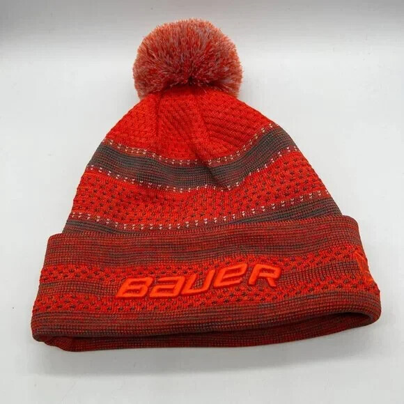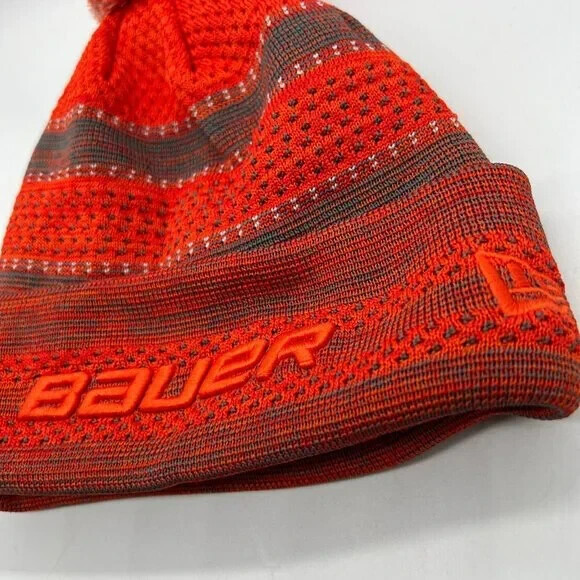 - Bauer Pom Pom New Era Beanie Hat Red Youth