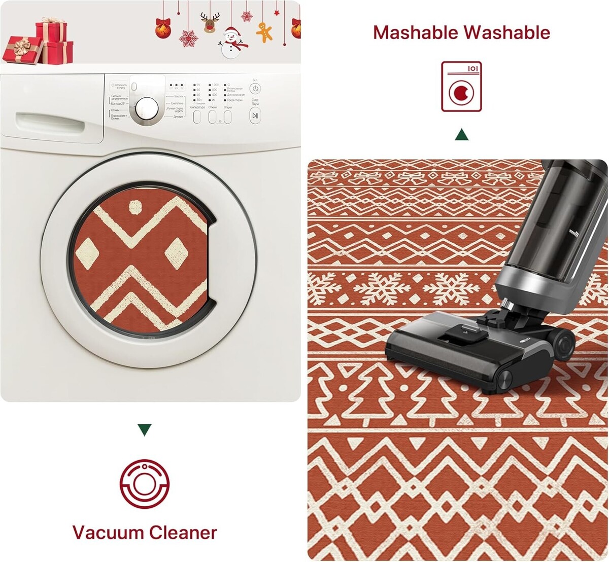 Machine Washable: Keep your home looking and feeling fresh with our Christmas rug that's designed to be machine washable. Simply throw it in the wash and let the machine do the work, making it easy to remove dirt, dust, and holiday cheer. Perfect for families who want a clean and tidy home during the holiday season.