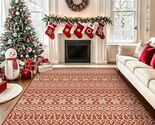 Area Rug, 8X10 Aesthetic Xmas Festive Non-Slip Rugs, Lightweight Machine Washable Rug for Fireplace Living Room Bedroom, Holiday Christmas Carpet for Indoor Decor, Snow Red