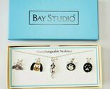 Bay Studio boxed interchangeable necklace with 5 pendants. New in box. Necklace is 17.5 inches long with a 2.5 inch extension. Lobster clasp. Pendants are .75 to 1 inch. Not intended for children under 12 due to choking hazard.