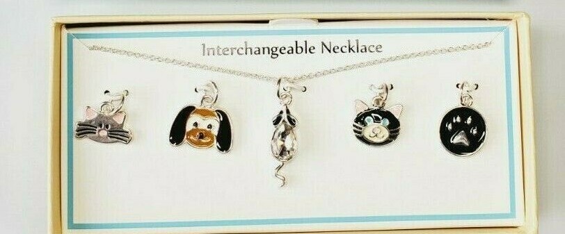 - Bay Studio Interchangeable Necklace W 5 Pendants Dog Cats Mice Paw Print