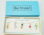 Bay Studio boxed interchangeable necklace with 5 pendants. New in box. Necklace is 17.5 inches long with a 2.5 inch extension. Lobster clasp. Pendants are .75 to 1 inch. Not intended for children under 12 due to choking hazard.