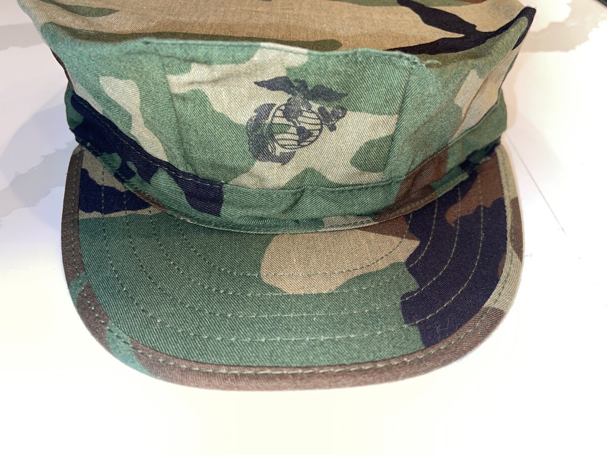 BDU WOODLAND 8 Point MARINE CORP USMC UTILITY CAP COVER W/ EGA LARGE