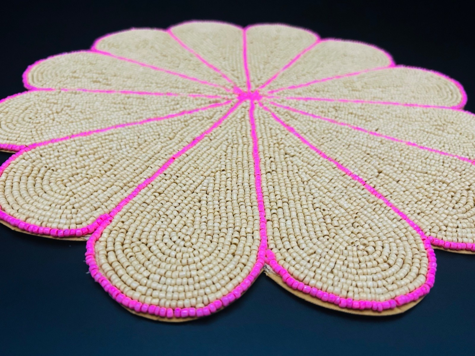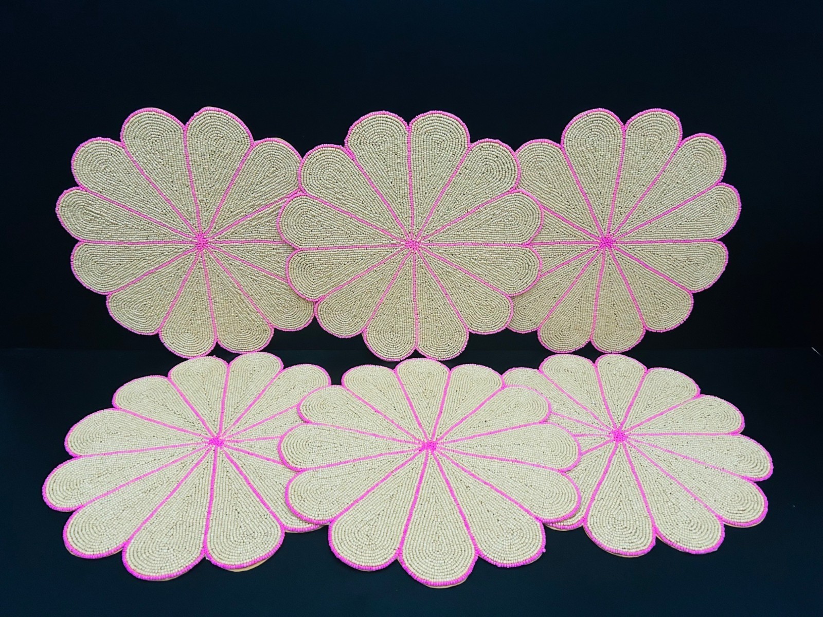 - Beaded Floral Placemats Set Of 6 Beige & Pink Handmade By The Spring Shop
