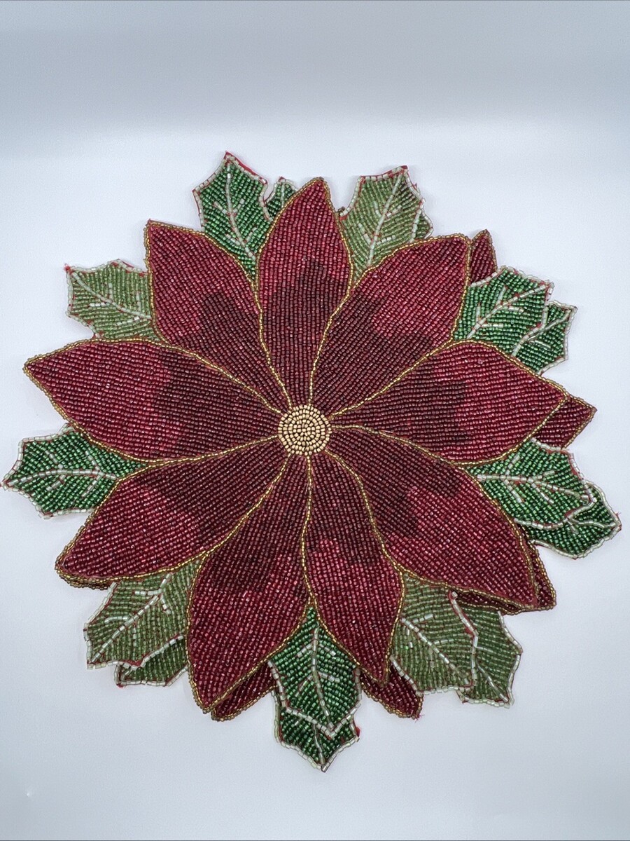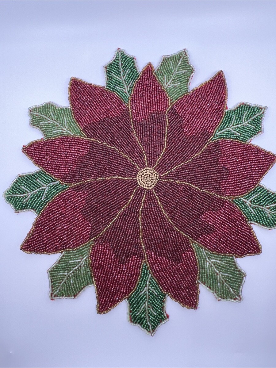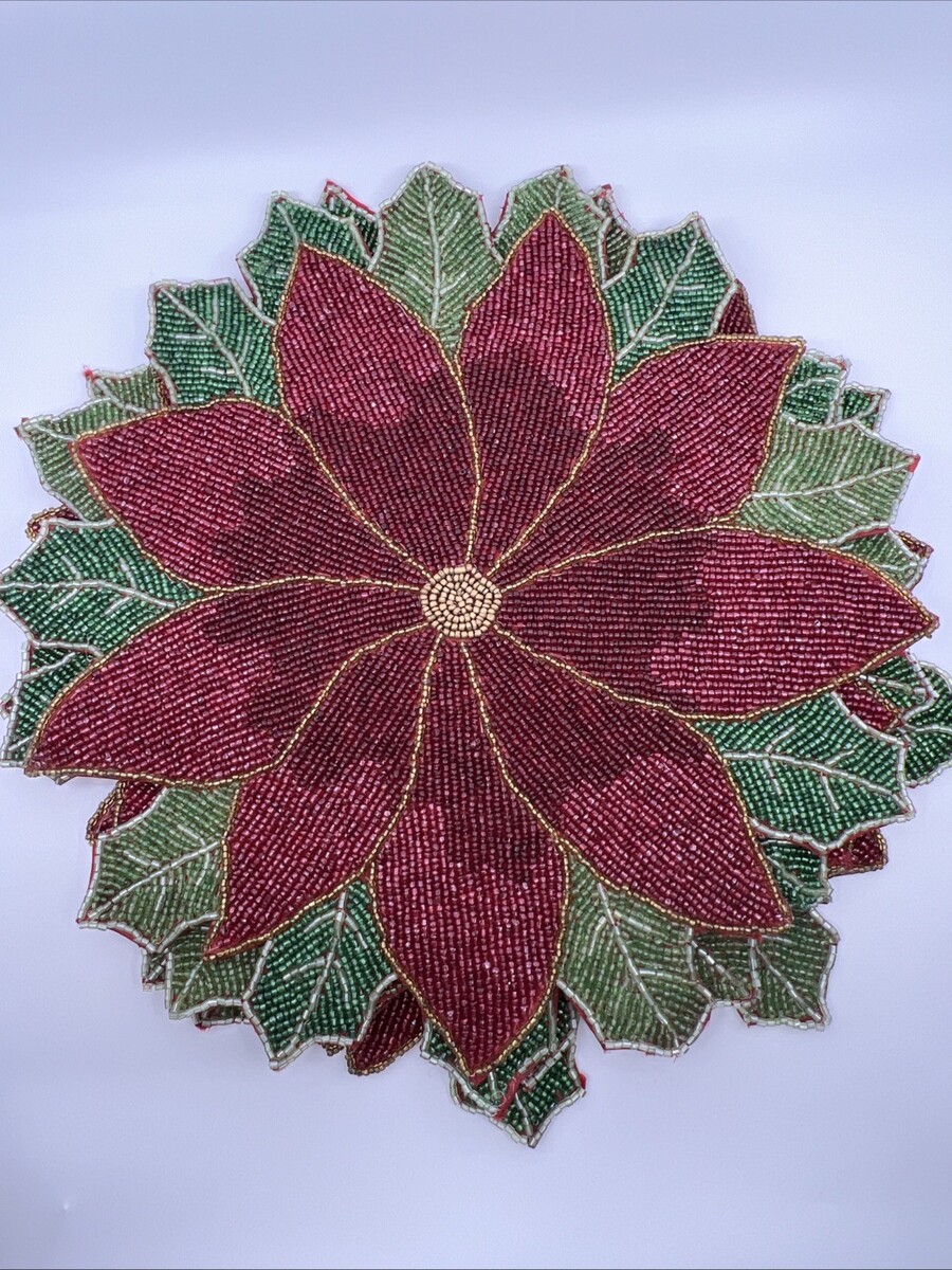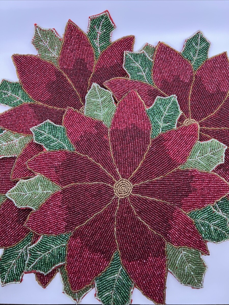 - Beaded Poinsettias Placemat Set of 4 Christmas Holiday Table Decor
