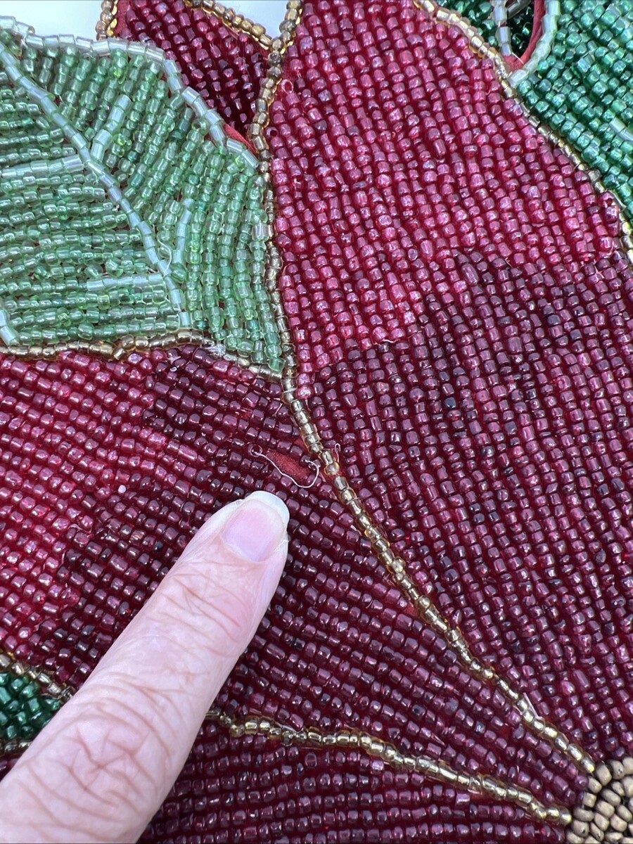 Great vintage condition. One small spot on just one of the placemats where the beads are missing the string is still there if you know how to restring some.