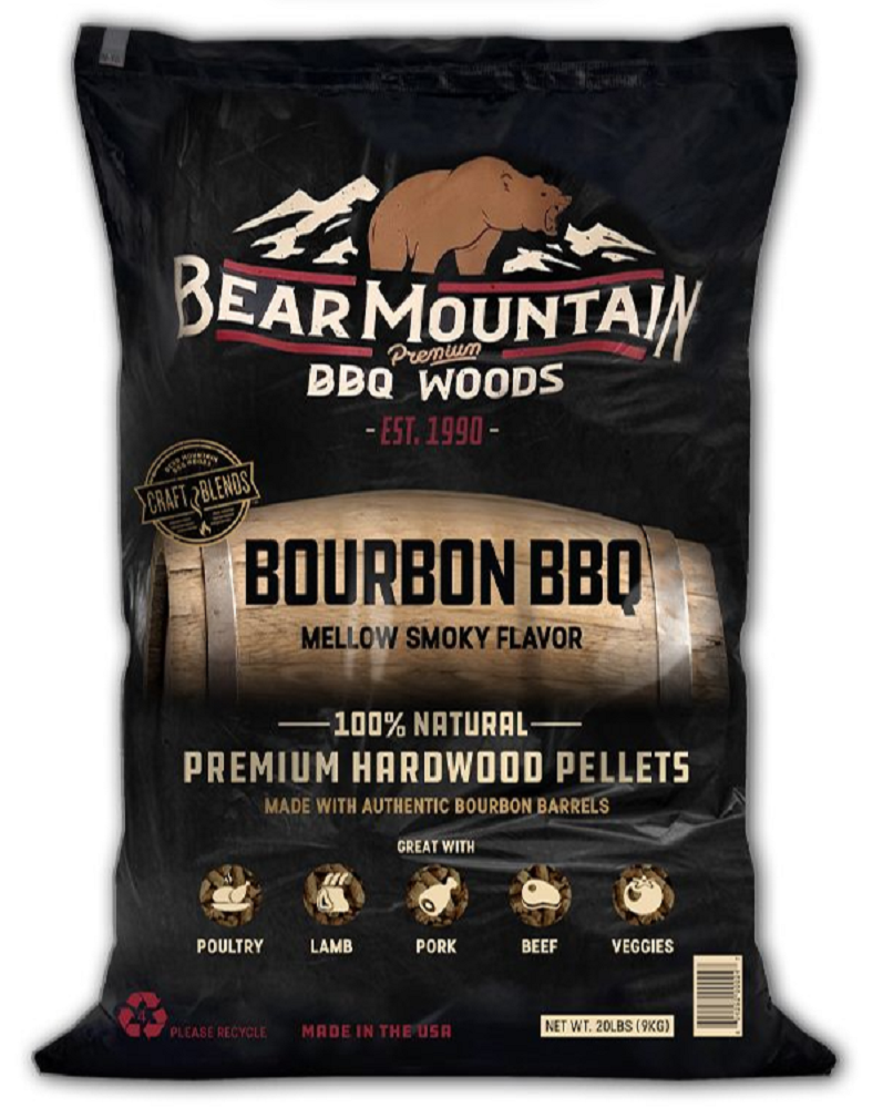The Bear Mountain BBQ Bourbon Craft Blend Cooking Pellets infuse the unmistakably smooth flavors of real bourbon barrel wood chips with rich, all-natural wood smoke to turn any ordinary meal into a savory masterpiece. Whether you prefer yours neat, on the rocks, or old fashioned, this Bourbon BBQ Blend pairs perfectly with all your favorite meats, rubs, and sauces. Made in USA.