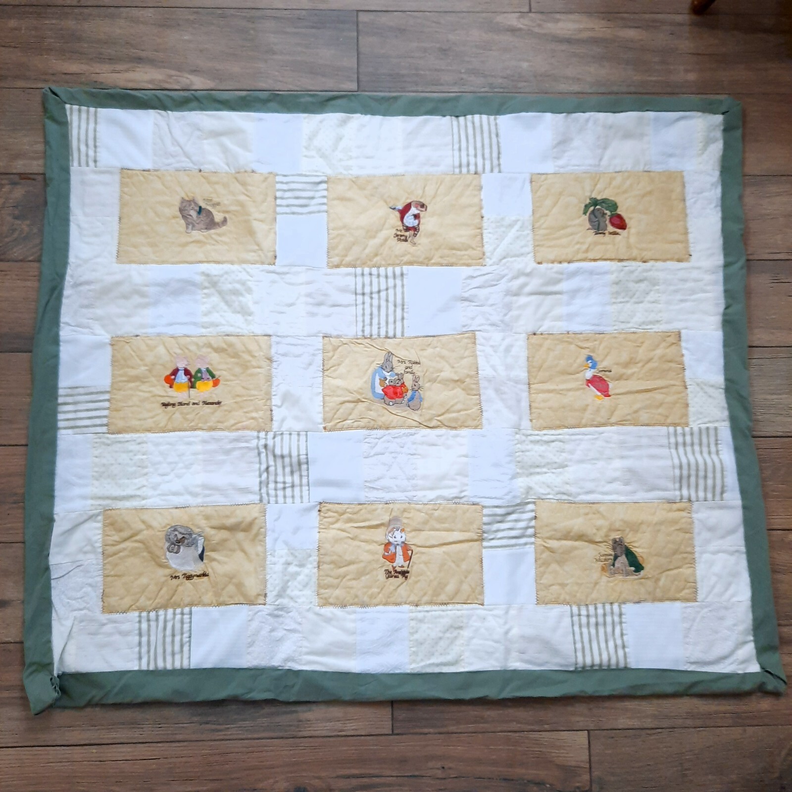 - Beatrix Potter Quilt Peter Rabbit handmade embroidered baby nursery blanket art