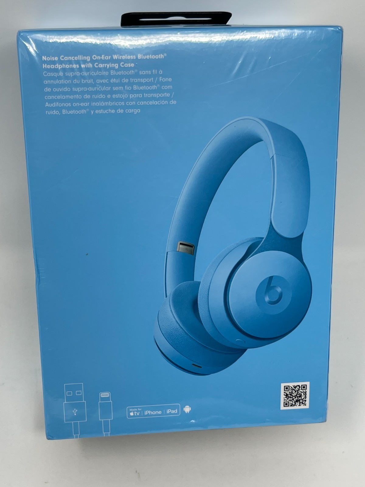 - Beats Solo Pro Headphones ANC On-Ear Wireless Bluetooth Light Blue MRJ92LL/A New