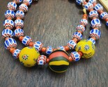 - Beautiful Blue chevron and yellow Floral glass beaded necklace Gift