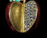 Beautiful Candy Apple Red Enamel & Rhinestones Apple Brooch Gold Green Sparkly
