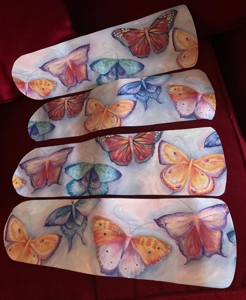 - BEAUTIFUL CUSTOM BUTTERFLY BUTTERFLIES DECORATED CEILING FAN COTTON CANDY SKY