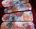 Brand new in the box 42" white flushmount ceiling fan with single school house style light fixture attached...Only the blades have been removed to be Custom handcrafted with beautiful butterfly motif. Variety of butterflies on soft cotton candy colored sky background. The colors on this one are fabulous!