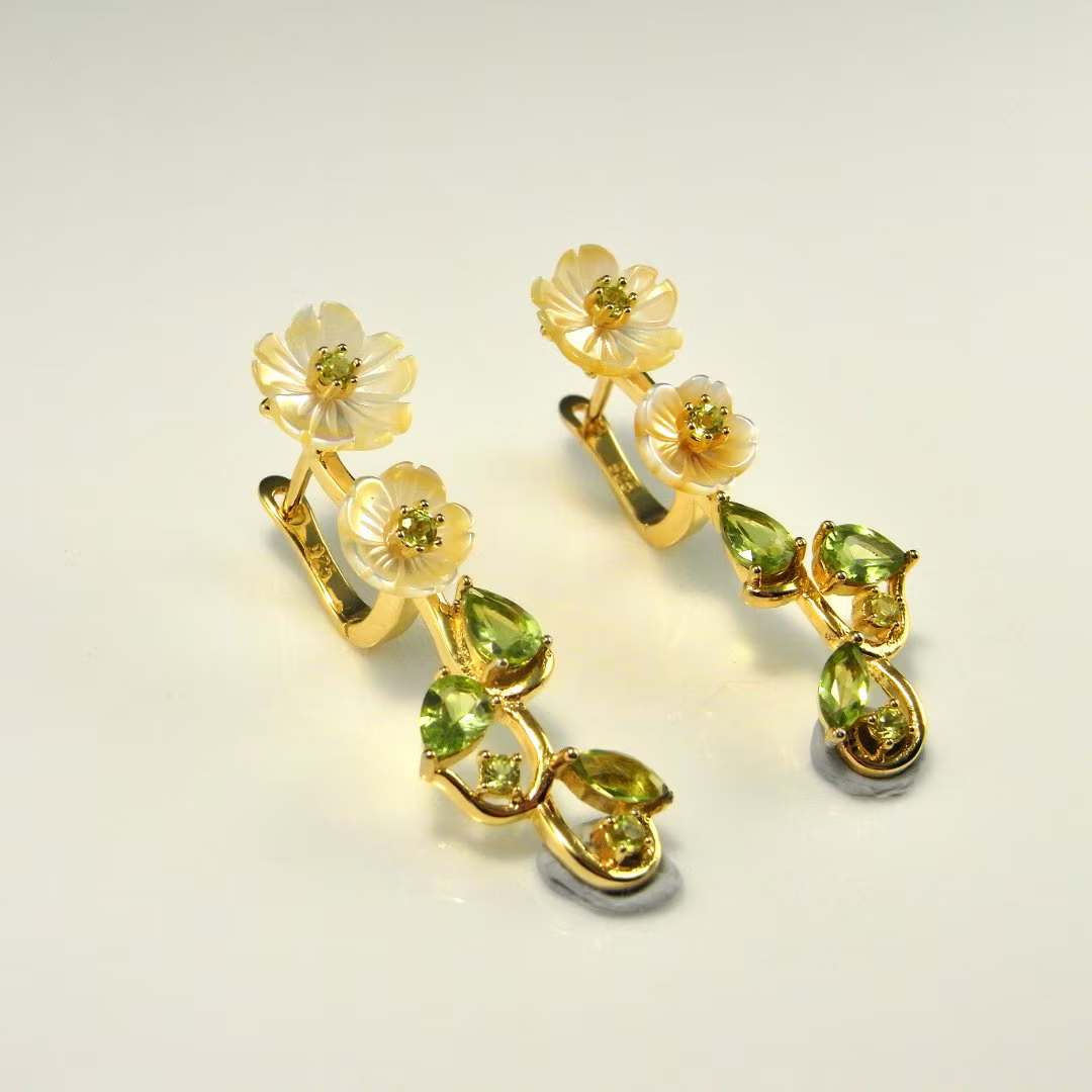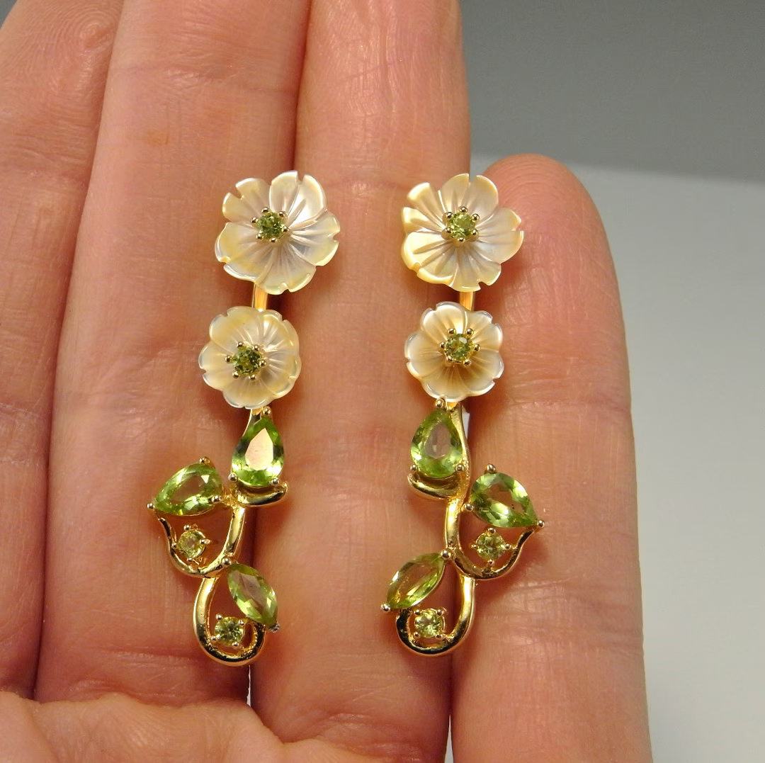natural peridot and natural mop - hand carved to look like sweet little flowers!