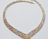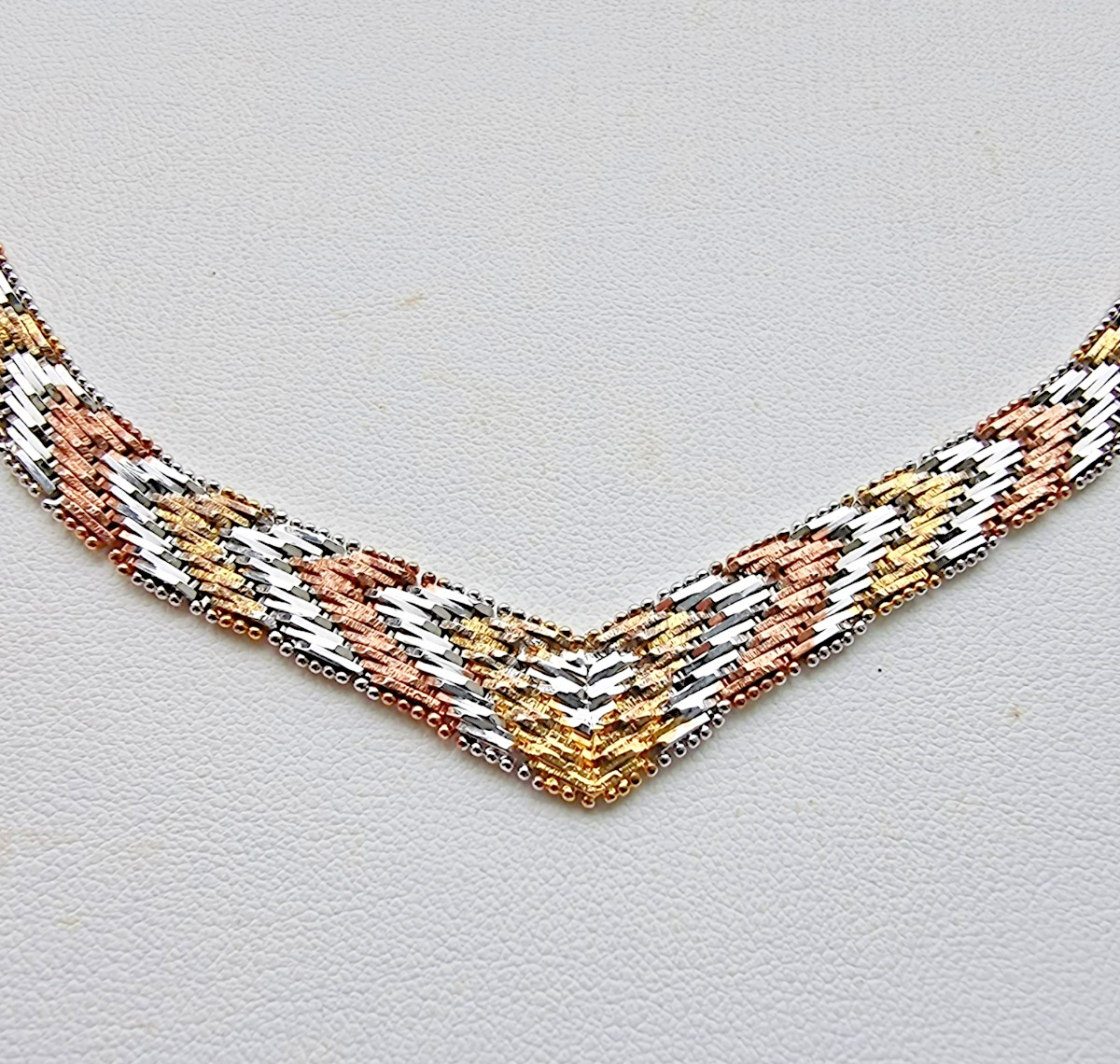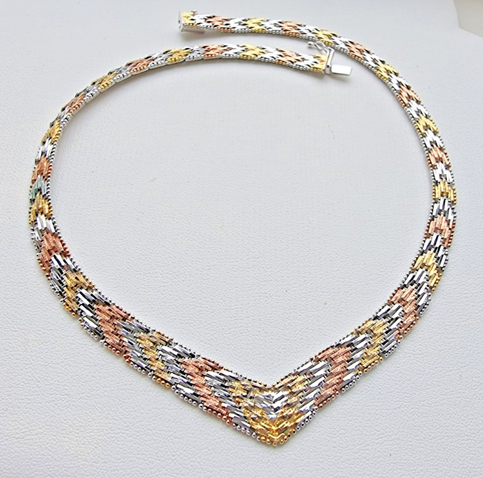 - BEAUTIFUL ITALIAN 3 TONE 925 STERLING SILVER V SHAPEN NECKLACE 40.1 gram. 16.5