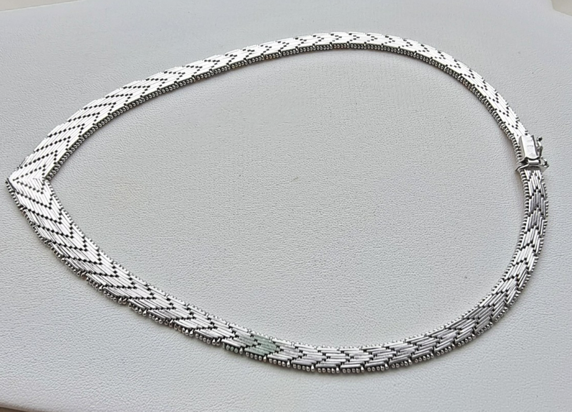 BEAUTIFUL ITALIAN 3 TONE 925 STERLING SILVER V SHAPEN NECKLACE 40.1 gram. 16.5