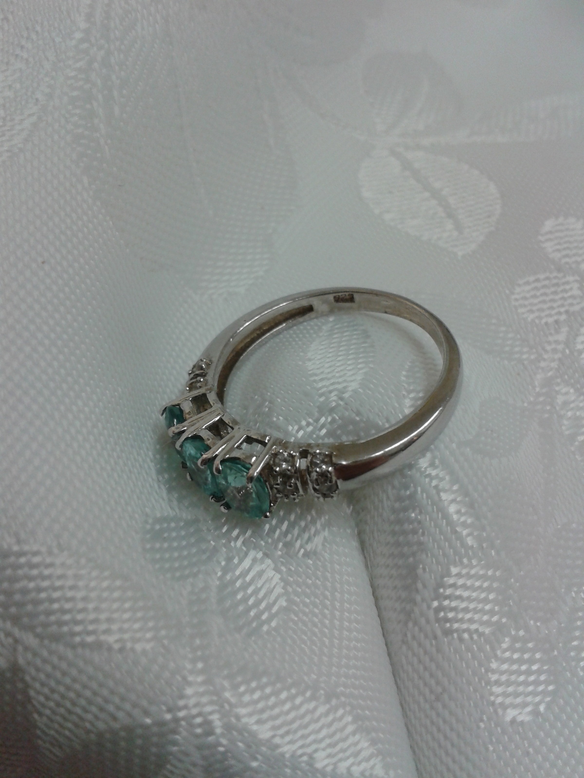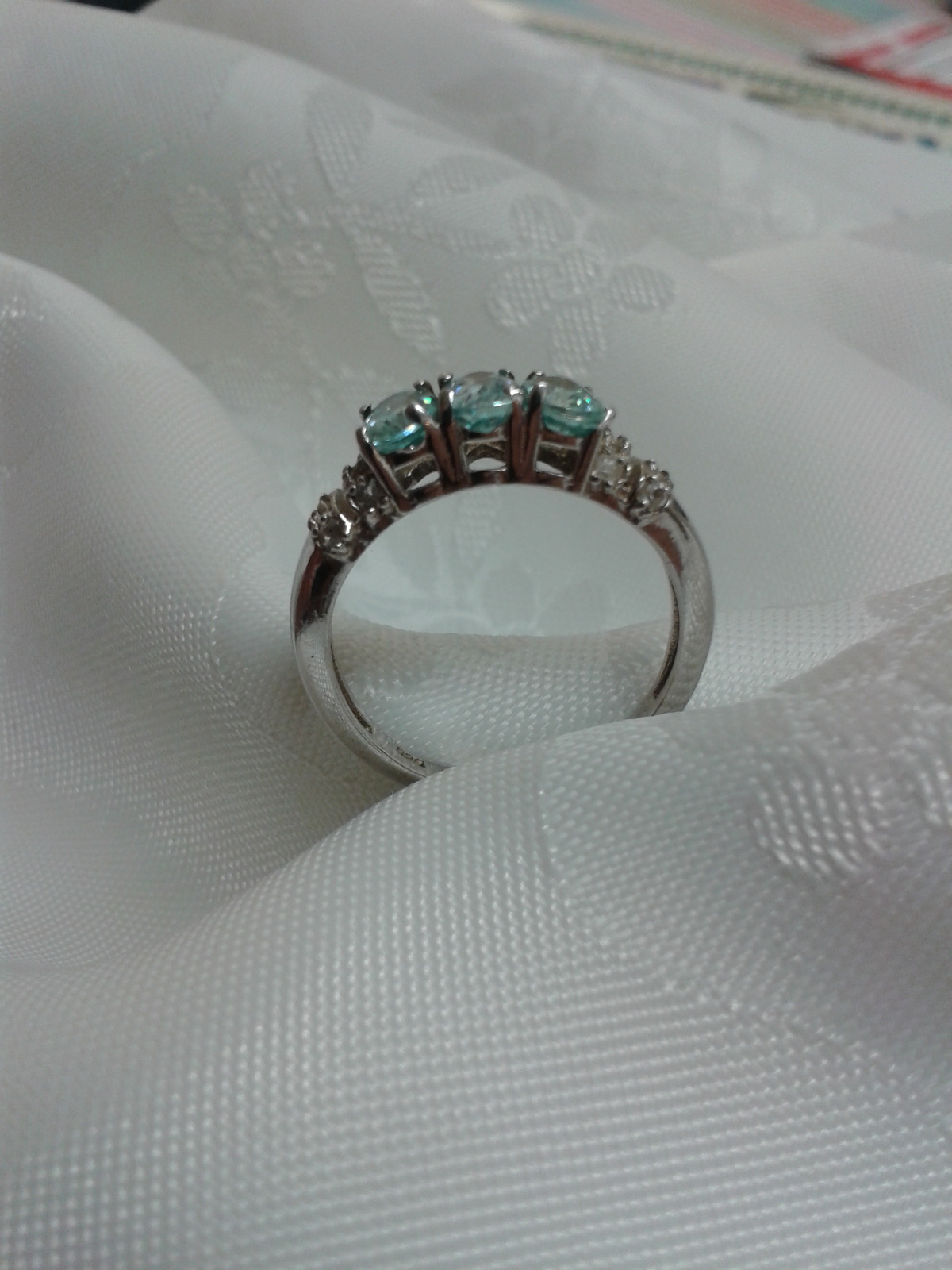 - Beautiful Sterling Silver Ring With Topaz Blue Stones and White CZ