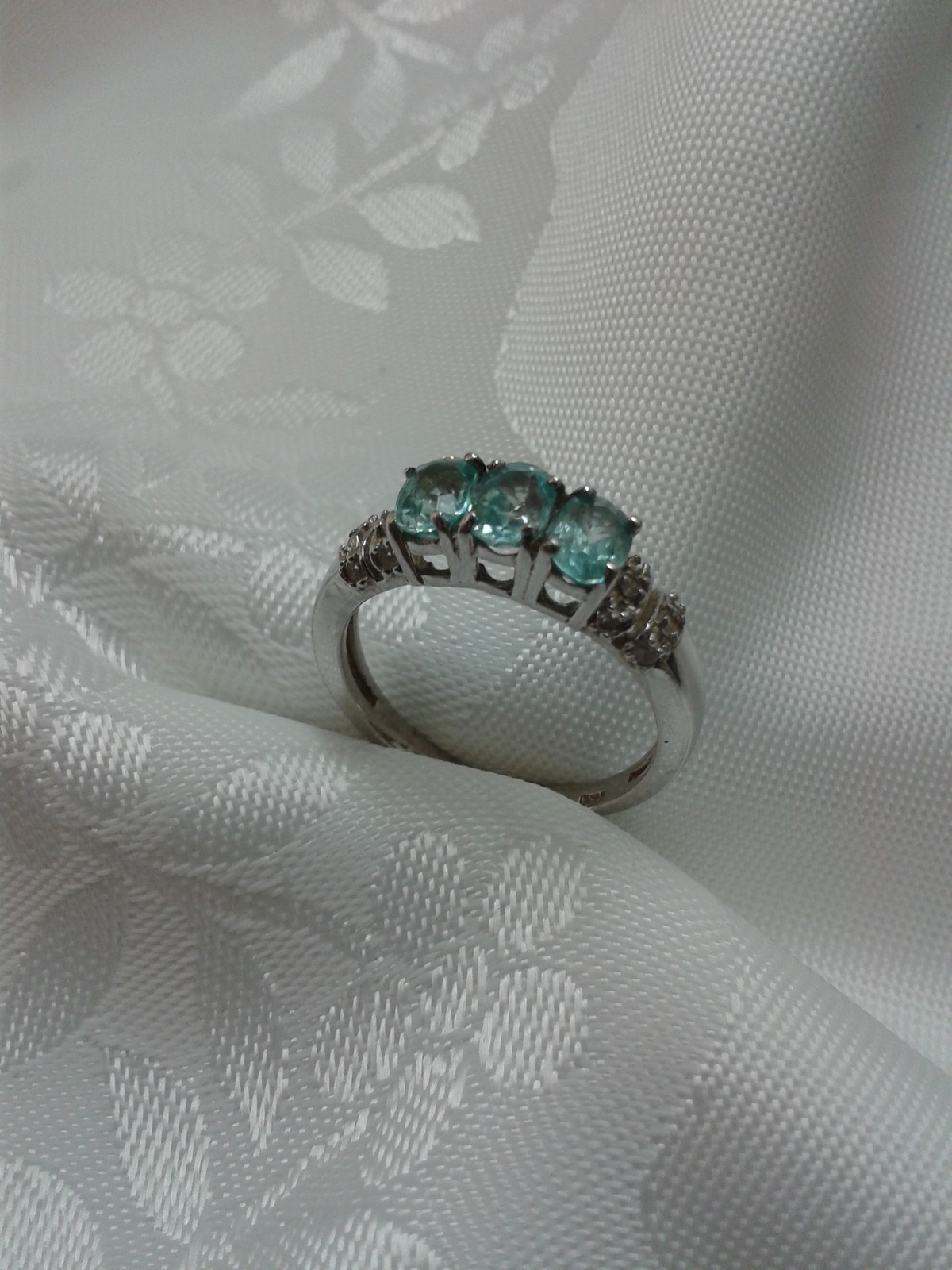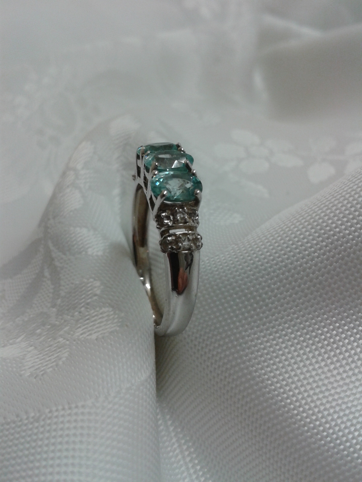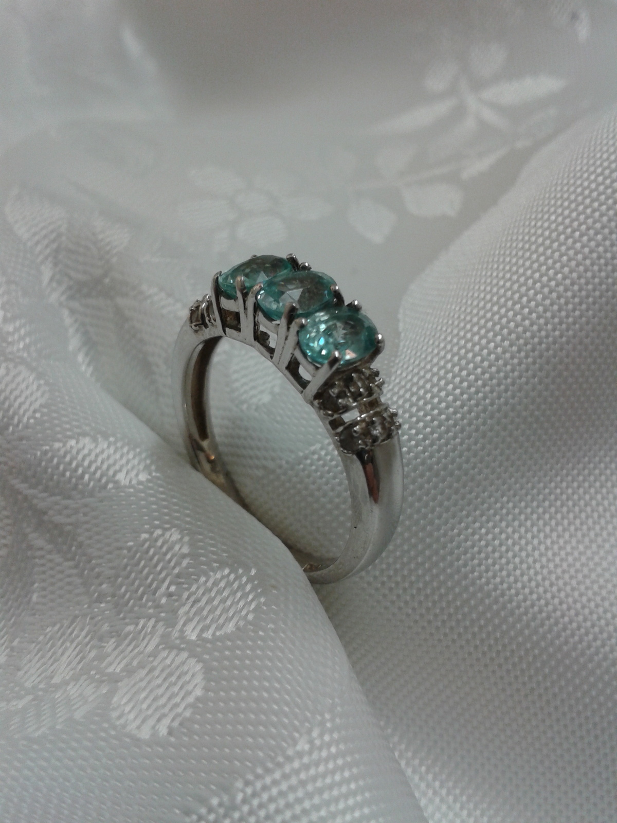 Beautiful Sterling Silver Ring With Topaz Blue Stones and White CZ
