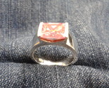 A beautiful solid sterling silver ring set with square brilliant pink CZ stone.