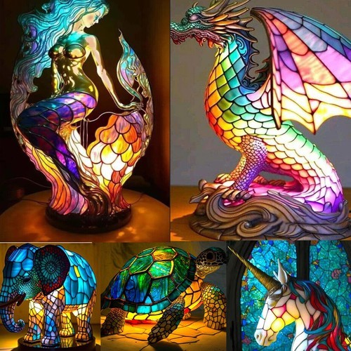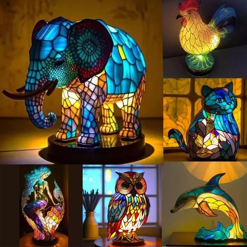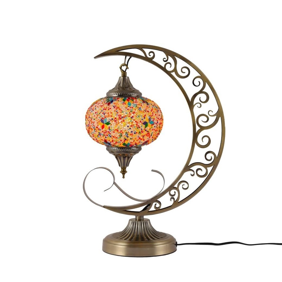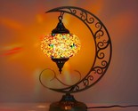 - Beautiful Turkish Mosaic Stained Glass Crescent Moon Bedside Table Lamp