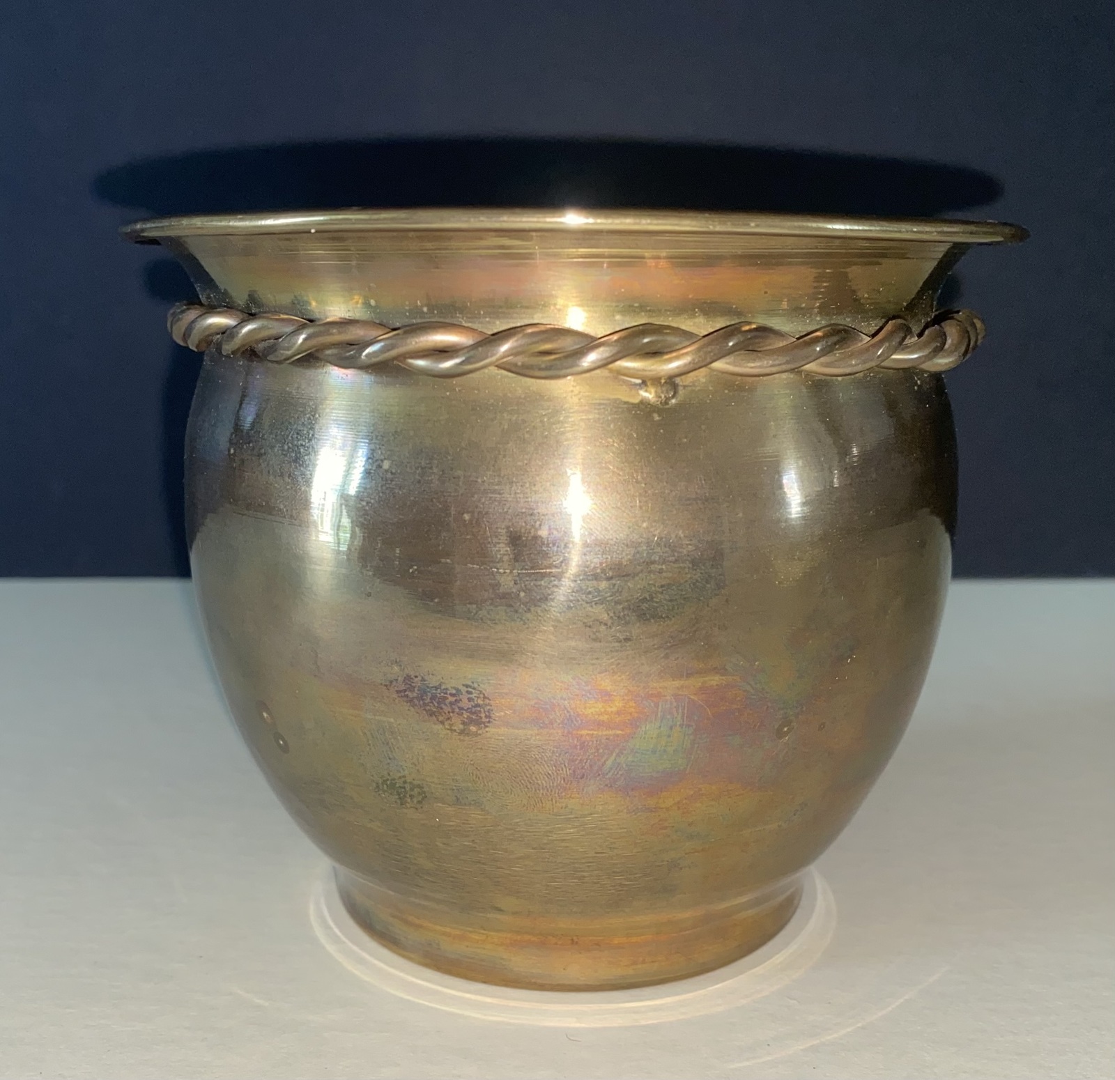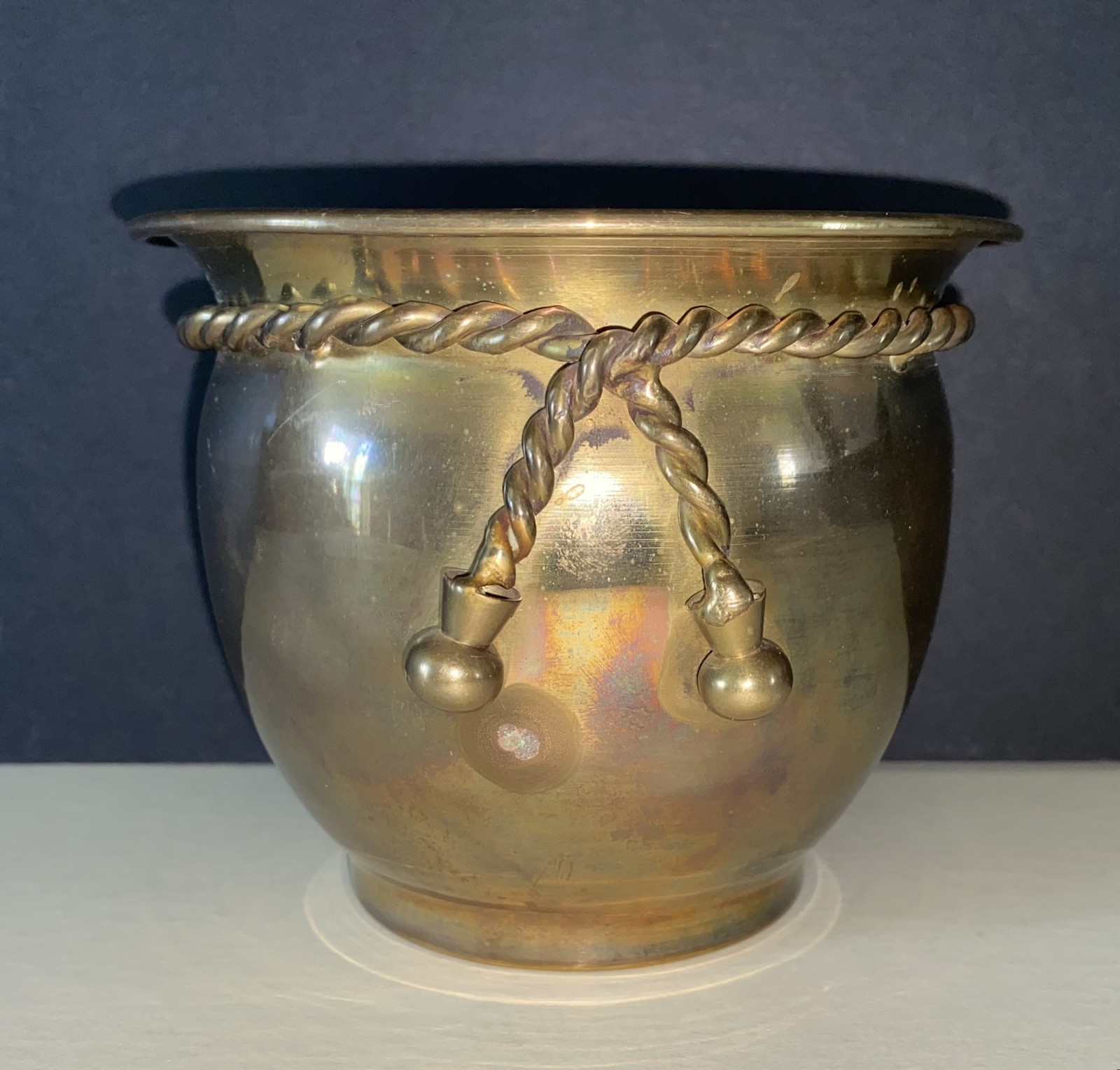 This lovely all Brass Planter is reminiscent of the common yet well made items from the 1960's/70's and will fit a 4” nursery pot easily. Please see our pictures which show its really nice condition.