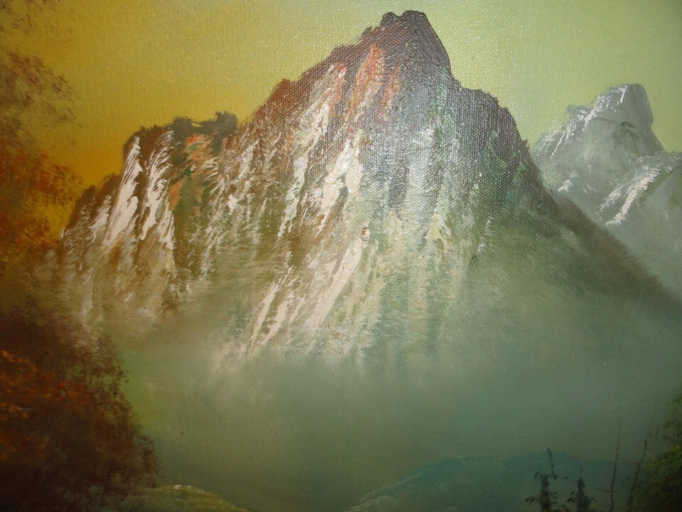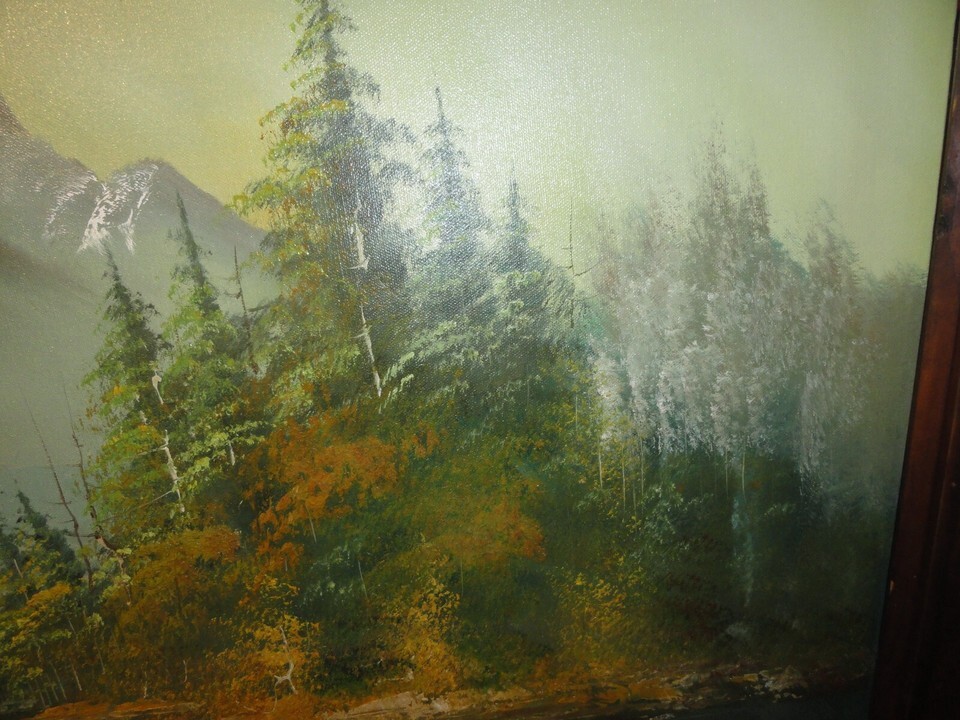 - Beautiful Vintage Original Oil Painting Mountain Forrest Signed & Framed 42"x30"