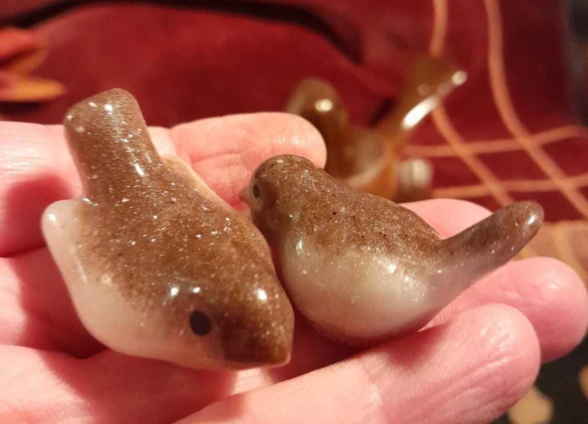 This is a beautiful one of a kind set. Shades of browns, golds and creams make up these adorable birds.