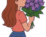 Beautiful girl with perfect figure smells lilac flowers - Cross Stitch Pattern